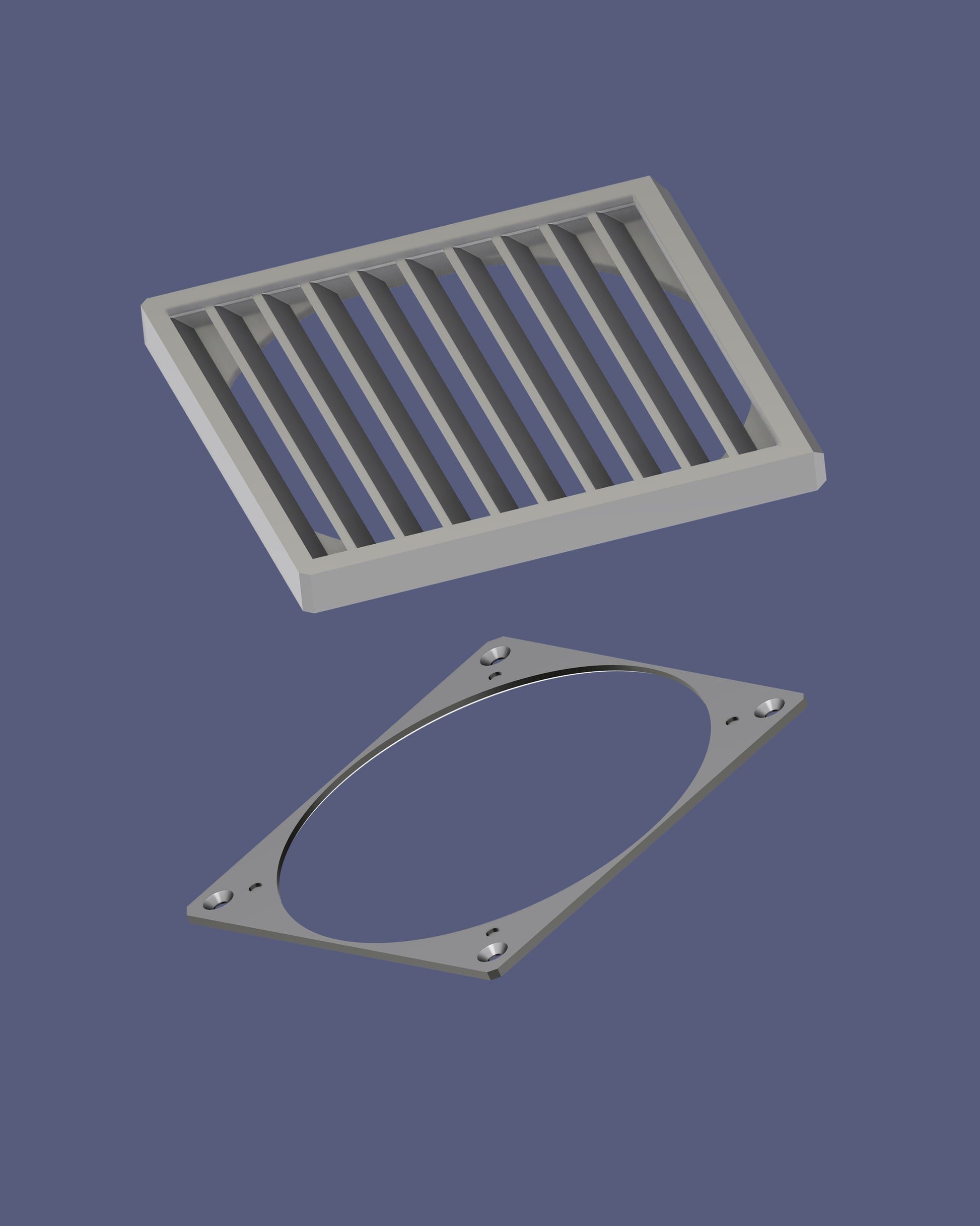 This is an STL file for our 2 piece magnet based fan grill design in 120mm size.